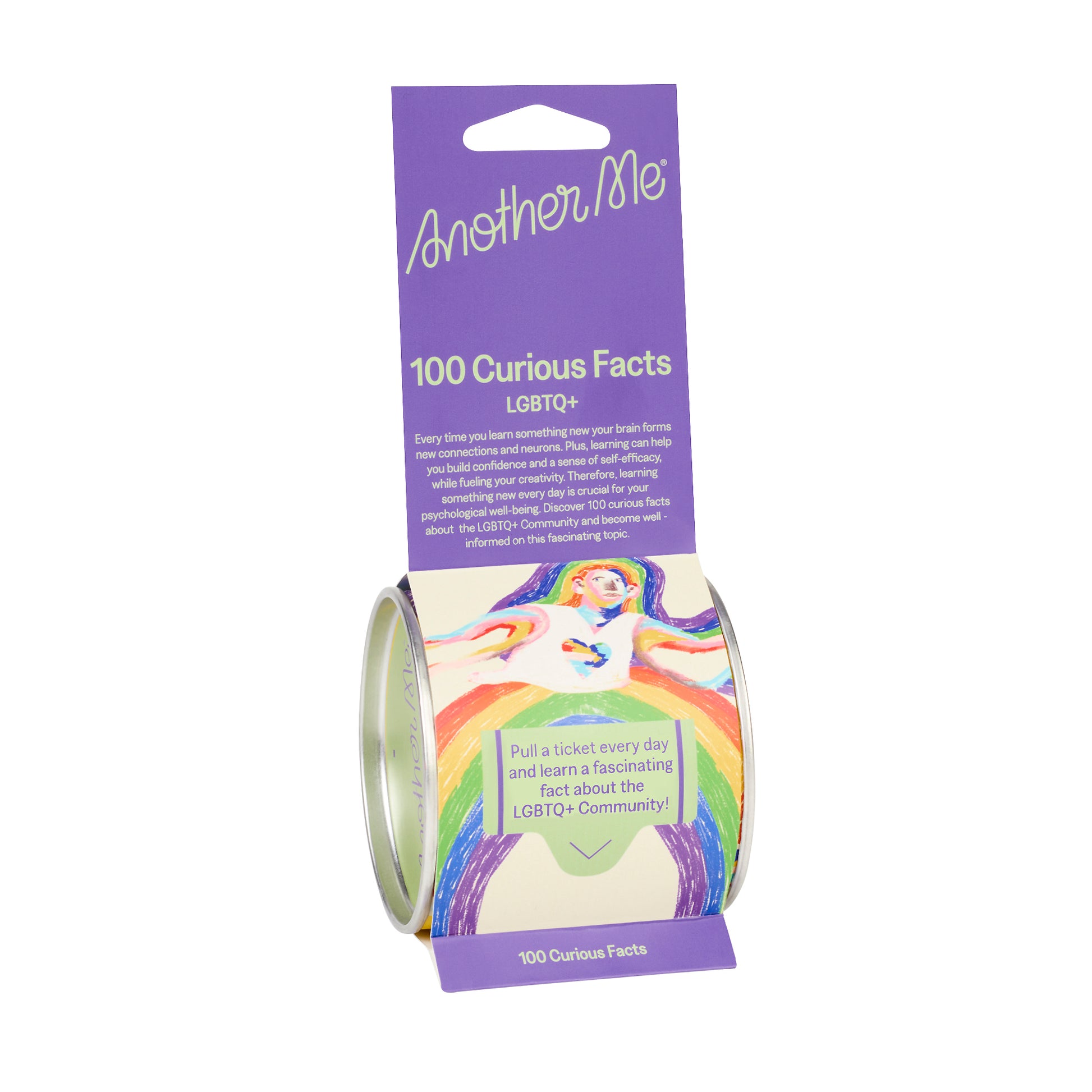 Did you know that your brain forms new connections and neurons every time you learn something new? Learning helps you develop confidence and stimulates creativity. Pull a ticket from this gorgeously designed trivia tin, and you'll discover 100 facts about the Rainbow community, improving understanding and picking up a few pup-quiz points along the way. Learning is central to the brand Another Me, whose products aim to develop mental well-being in young people by promoting healthy lifestyles and acceptance in innovative ways.