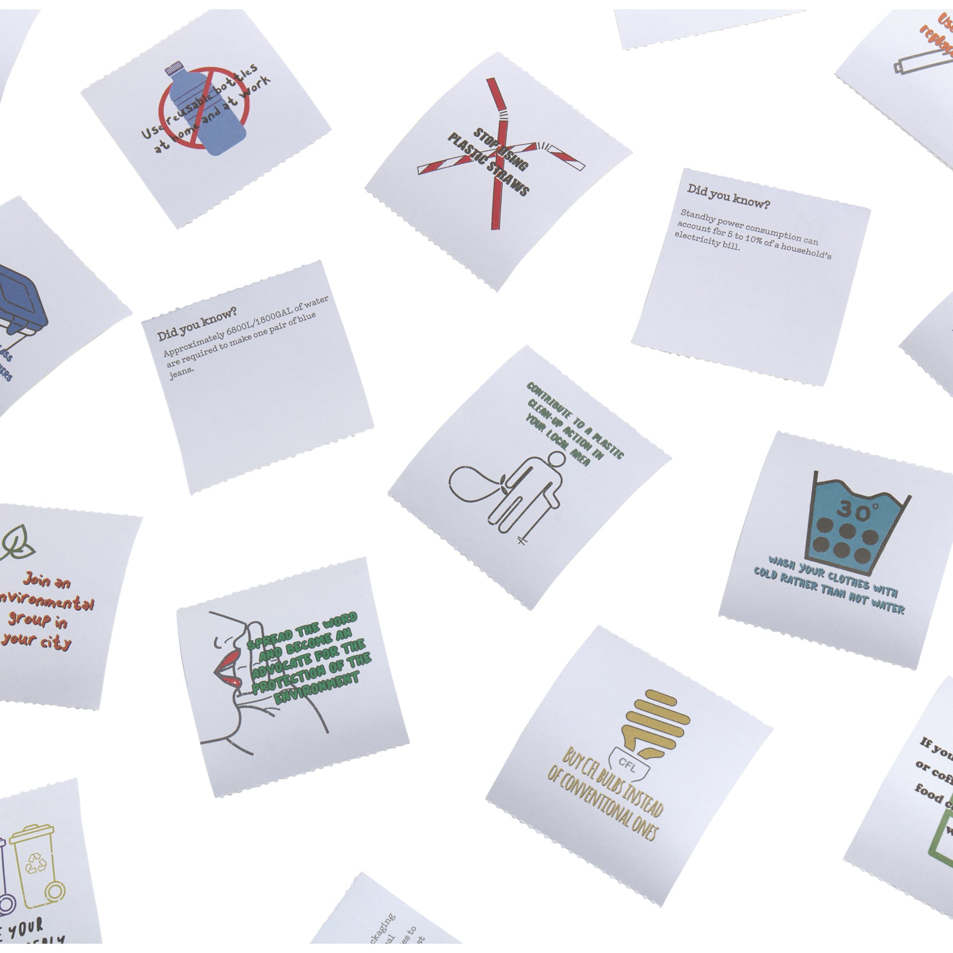 contains 30 tear-off daily activities for a environmentally-friendly lifestyle