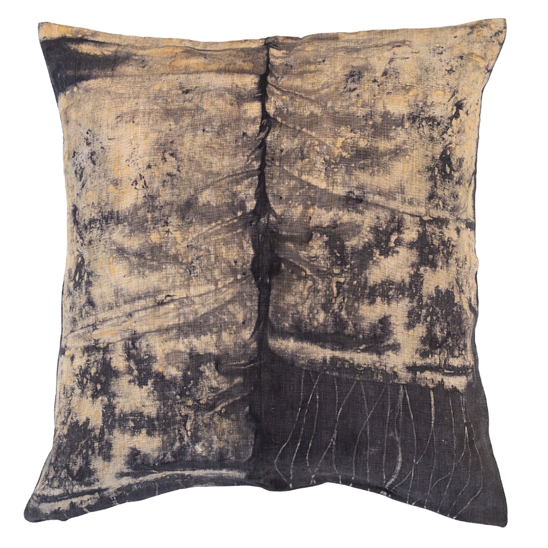 Produced by the artists of Anindilyakwa Arts, these linen cushion covers are handcrafted by women from the Groote Eylandt Archipelago in the Northern Territory. Using the ancient knowledge of Anindilyakwa country and dyeing practices, these bush-dyed textiles are created using a variety of locally sourced roots, leaves, bark, and berries. The artists arrange leaves to create patterns before immersing the fabric in dye pots of plant materials, producing unique textiles that reflect the impression of Anindilyakwa country.