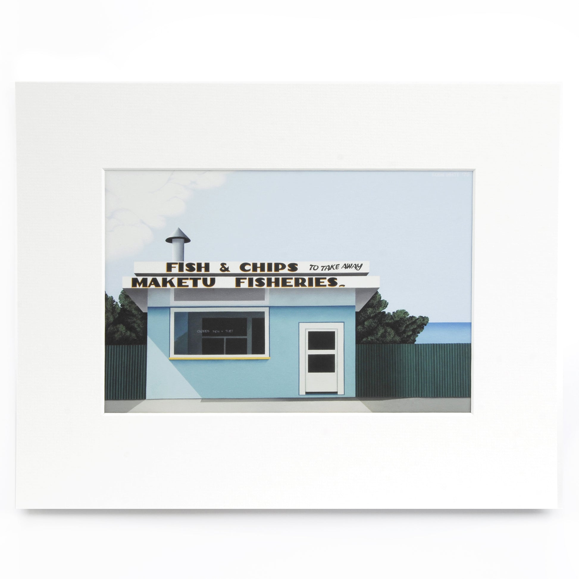 Indulge in some kiwi nostalgia with this print of Robin White’s slick, sunny painting of the most quintessentially New Zealand building imaginable: the local fish and chip shop.