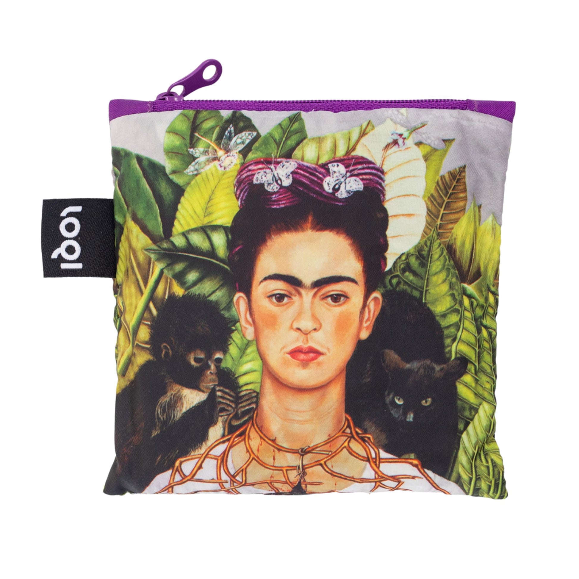 Honour the brilliant, beautiful, bittersweet life and art of Mexico’s most legendary painter with this Frida Kahlo shopper featuring one of her most famous paintings, Self-Portrait with Thorn Necklace and Hummingbird. Able to hold up to 20kgs, Loqi bags boast super strength, water-resistance, and bold designs all folded neatly into a handy 11cm carry pouch. Substantially sized at, these are the perfect reusable to-go bags!