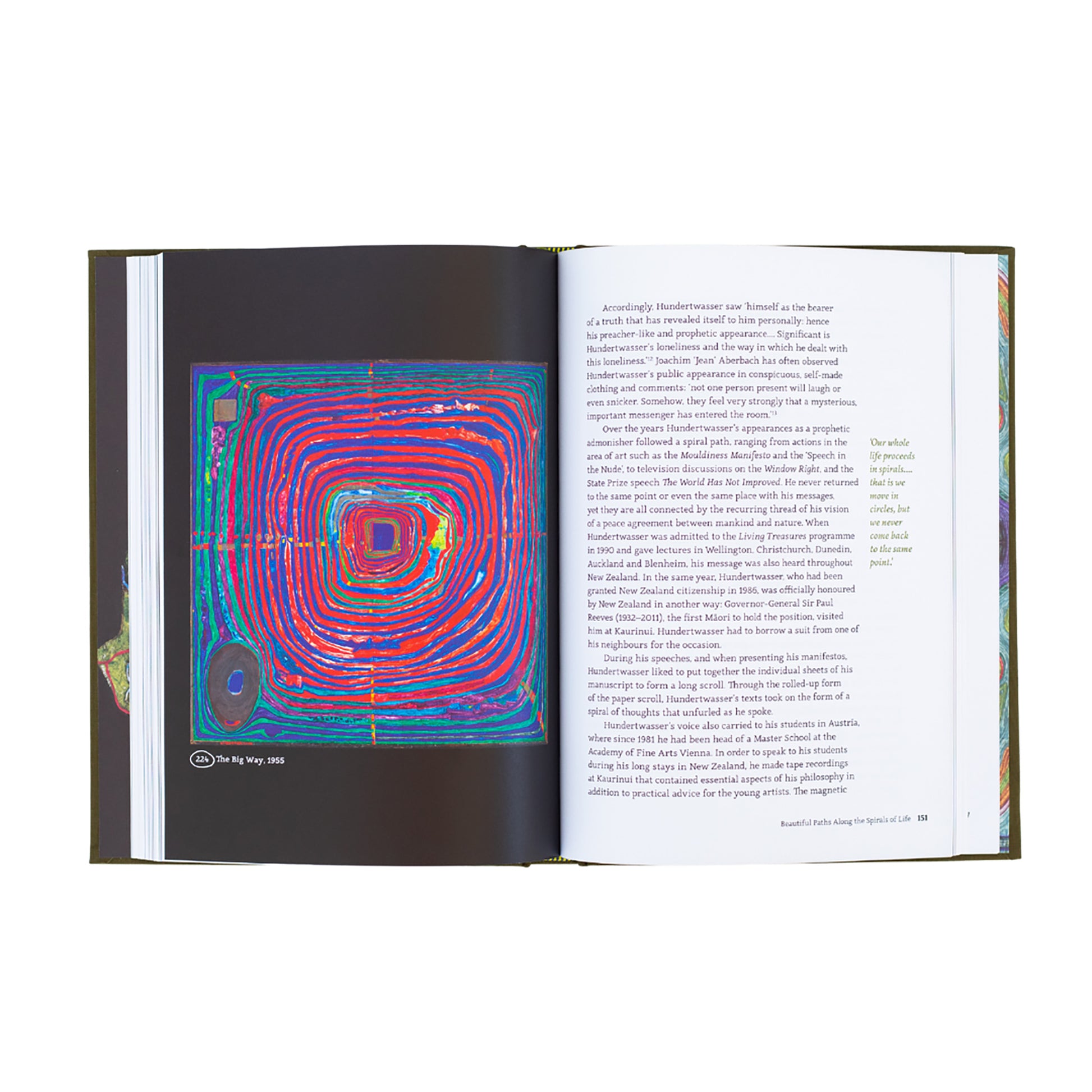 Austrian-born artist Friendensreich Hundertwasser arrived in New Zealand in 1973 seeking refuge from a world out of kilter with nature. Hundertwasser in New Zealand is a richly illustrated account of the artist’s love of Aotearoa, his interaction with the people and the land, and the effects of these on his work. Uncover the artist’s work in New Zealand, including the Koru Flag and the Kawakawa Public Toilets, through paintings, drawings, sketches, photographs, and the artist's writing.