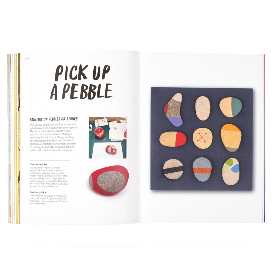 Projects like hand printing, marbling, cyanotype, and rubber stamping will absorb you for an enjoyable afternoon; others like street photography, beach sculpture, and dog doodling can be done in the moment. Get painting, printing, drawing, making and imagining and discover how little moments of creativity can bring great joy.