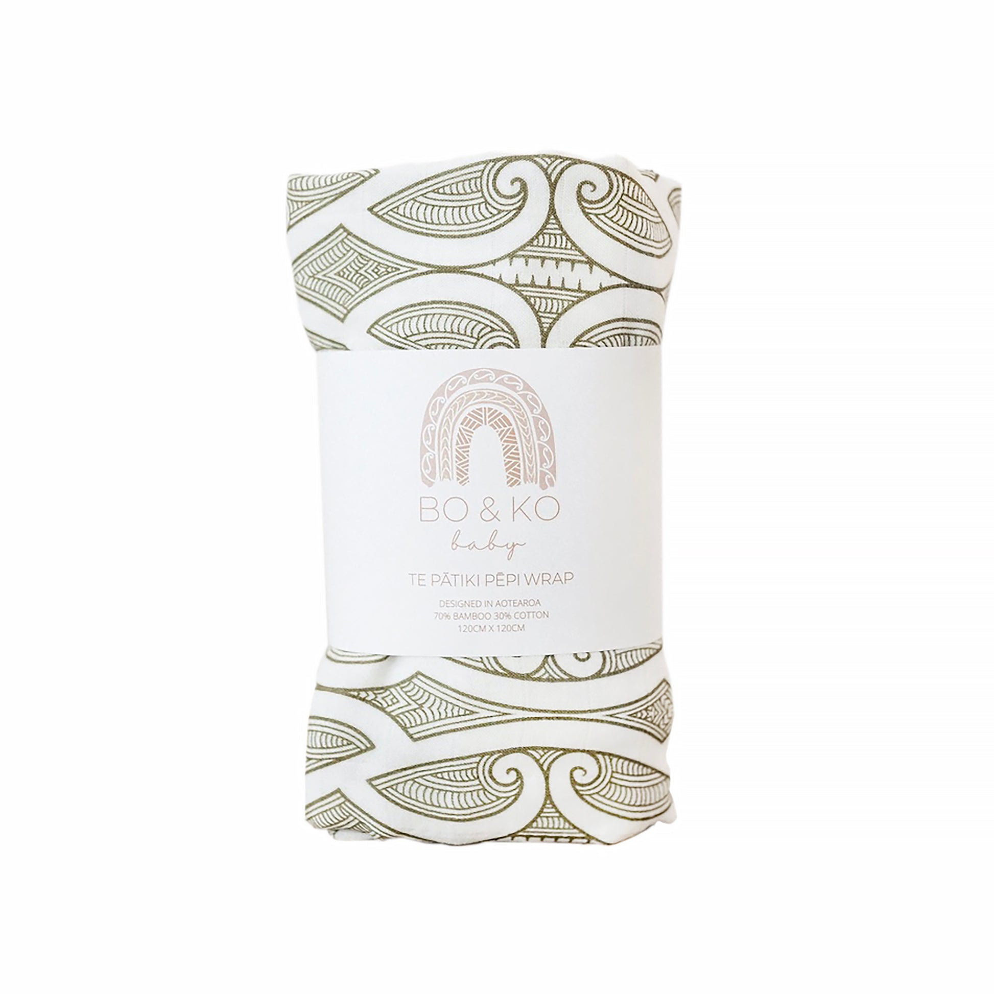 Cuddle your tamariki up in BO & KO’s glorious Te Pātiki Pēpi Wrap. Made from a mixture of natural materials, bamboo and cotton – and being a generous size of 120 x 120 cm – this is not only a perfect pēpi wrap, but also works well as a shade cloth, light blanket or over the shoulder feeding cover. The swirling kōwhaiwhai pattern represents your pēpi’s journey to come.