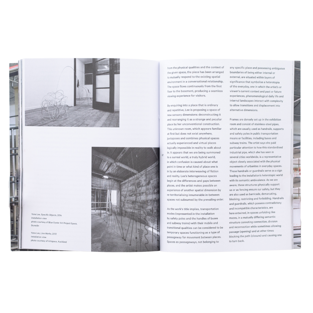 Documenting the elaborate installation In Transit (Arrival) by Auckland based artist Yona Lee, this limited edition bi-lingual (English and Korean) publication features full-page colour images of the work plus writing by Jinsuk Suh, Director, Nam June Paik Art Center, Seoul; Bruce E. Phillips, Curator at Large, Te Tuhi; Jungah Lee, Curator, Alternative Space LOOP, Seoul and design by award winning graphic designer Kalee Jackson.